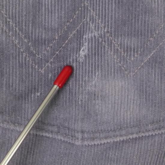 数ヵ所に僅かな汚れ、後ろ左ポケットに僅かなスレがございます。着用に問題はございません。