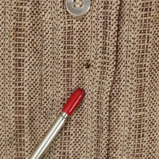 数ヵ所に僅かな汚れ、第4ボタン付近にほつれがございます。着用に問題はございません。